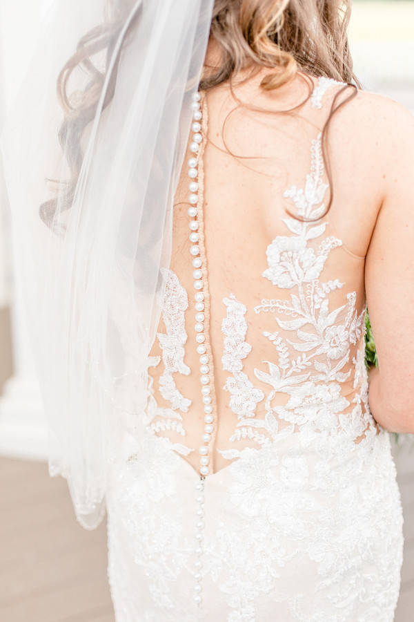 Ashley’s dad passed away due to Huntington’s when she was in high school. To honor him she had a piece of the shirt he wore on the day she was born sewn into her dress.