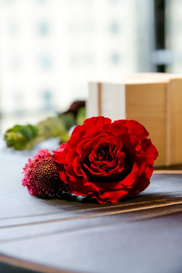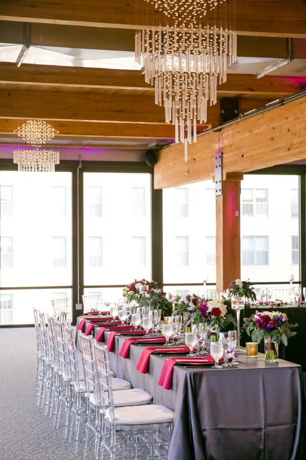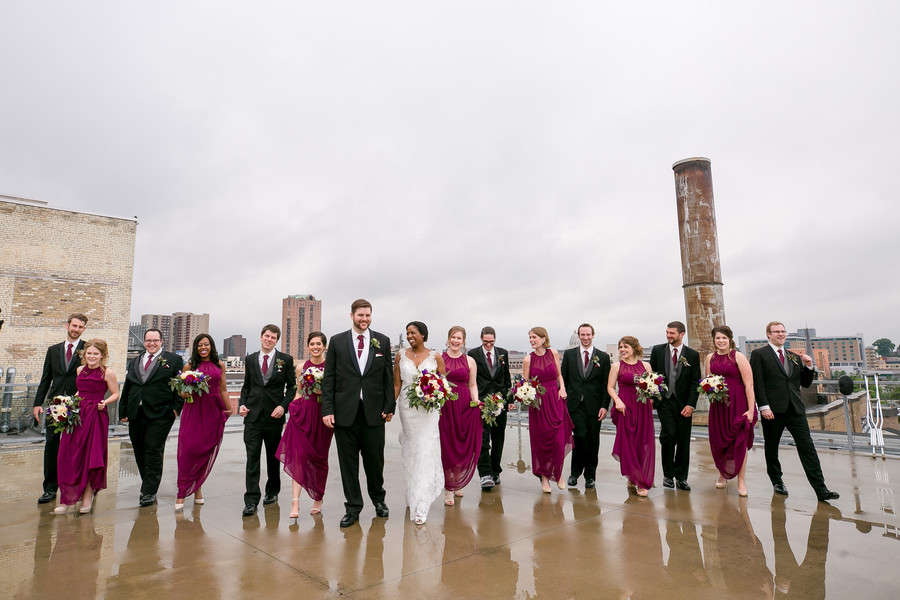 Photographer’s Comments: “Ashley and Tom said ‘I do’ at A’BULAE in downtown Saint Paul! This couple toured ten wedding venues, but knew there was no venue that would top A’BULAE. They loved the big, open dance floor and they knew their sangria and silver color palette would fit the room perfectly. A special moment on their wedding day was Tom’s gift to Ashley. He got her a gorgeous necklace. During the first look, Ashley didn’t wear a necklace, and after seeing her, Tom smiled and said, “My gift is going to match your dress perfectly!” And he was right! The necklace was a perfect fit with Ashley’s wedding gown. Ask for the Moon Events helped plan their big day and everything came together beautifully! These two have been together for four years and engaged for two years so their families and friends couldn’t wait for the big day!