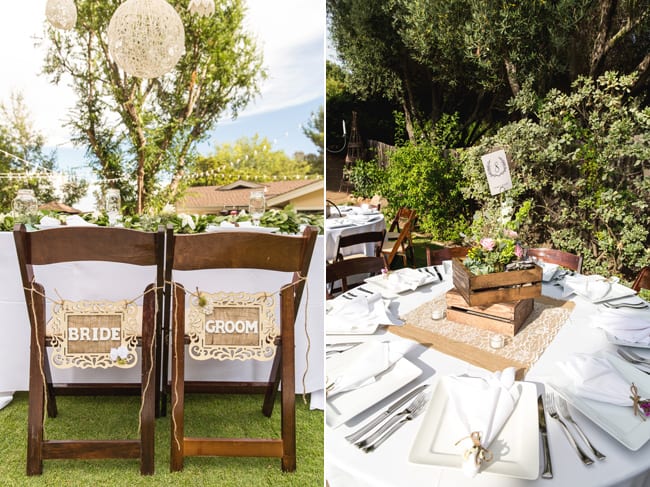 I love being able to share gorgeous weddings with you and this wedding is definitely spot on! I love how Katie had her reception in her childhood backyard. The colors, decor, and seating chard are so perfect — not to mention another stunning dessert table!