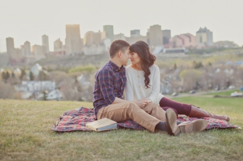 For the proposal Marcus had a friend help him set up a special spot in one of the Muttart Conservatory’s Feature Pyramid: a bench laid out with their adventure book and ‘married life’ (the theme song from Up) playing in the background. When they reached the bench, Marcus’ friend started snapping photos for their adventure book as Marcus got down on one knee and recited words he’d memorized for this very moment.