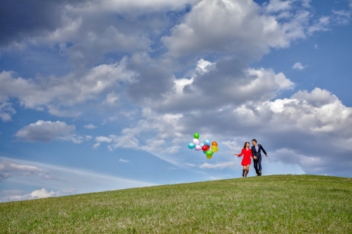 Keep scrolling below to view a balloon engagement shoot that incorporates many colorful balloons as an ode to a special moment shared between a couple and the movie Up.
