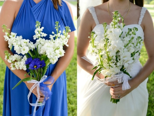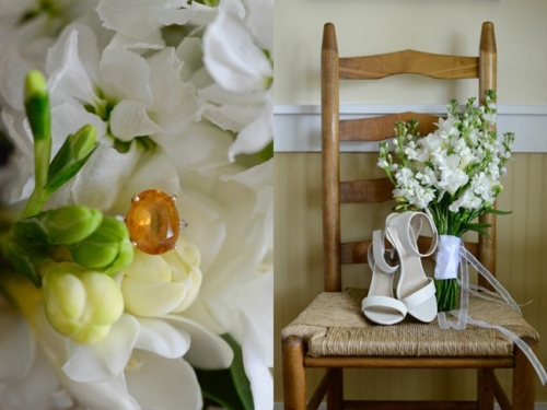 “We used white freesia, white stock and some blue and white daisies mixed in here and there.”