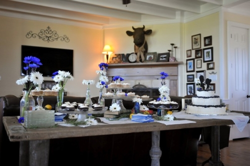 The kick off to the 4th of July long weekend has begun! I hope everyone has a good ol’ fashion BBQ to go to tonight or perhaps attend a wedding this weekend. I was inspired by this wedding because it is light, summery, very country, with hints of blue and white – I thought it was worthy of being posted on the fourth of July. This blue and white country wedding (sorry no red) was capture by Eureka Photography. I’m wondering where I can get a piece of that delicious looking blueberry wedding cake!