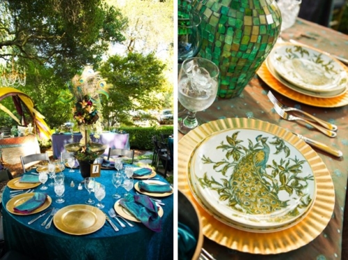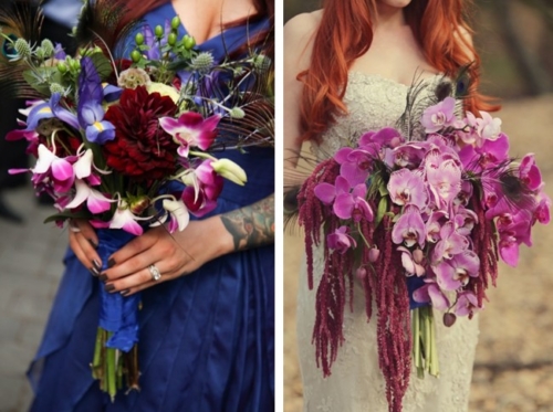 Rebecca and Matthew’s peacock themed wedding is colorful, stylish and unique. With peacock feathers adorning everything from the reception décor, bouquets, boutonniere, even down to the color of the bridesmaids dresses, this is truly one theme that you can really go all out with color and still have it turn out classy and sophisticated.