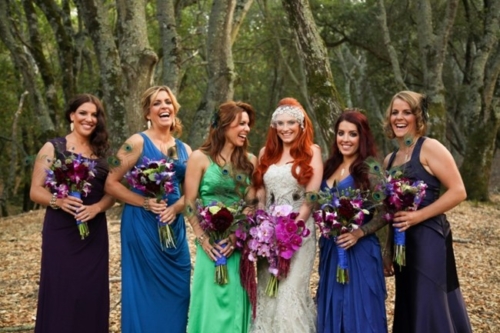“Rebecca looked amazing in her sliver dress and stunning red hair! Her girls all wore jewel toned dresses in different styles, the colors looked fabulous together.
