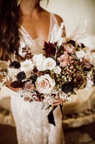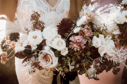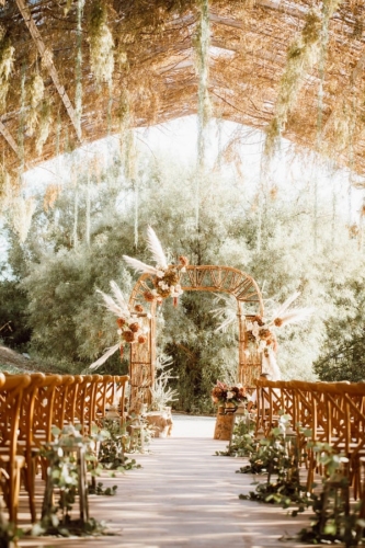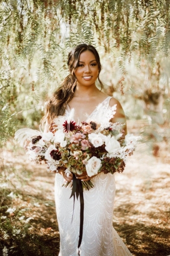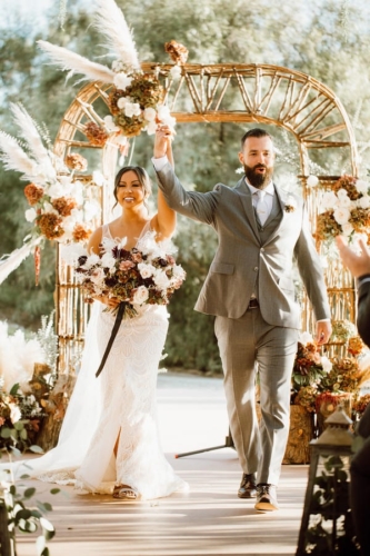 Photographer’s Comments: “When the wedding day starts off with the first look taking place next to a view of the Pacific Ocean and slowly works its way up to a rustic hidden treasure appropriately known as the Ethereal Gardens in , you’re definitely in for a treat. DIY mosaic giveaways made with love by the groom’s mom, table signs made by the bride herself, a macrame background for the photo booth designed by her sister and adorable custom made pins of their dog, Arya, designed by a friend? This wedding was definitely not short of creativity and LOVE. So many special moments and personal touches hidden in all the details with the florals designed by Radleigh + Sage Event Company giving this boho chic wedding a truly ethereal experience! And the incredible images taken by the talented Khoa Photography captured it all.”Gallery