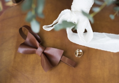A handmade leather bow tie (like the one below) can be a unique accessory to your groom’s wedding fashion.