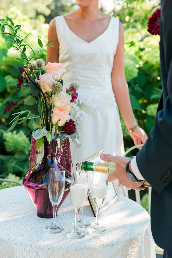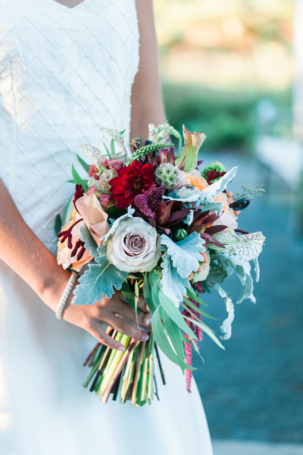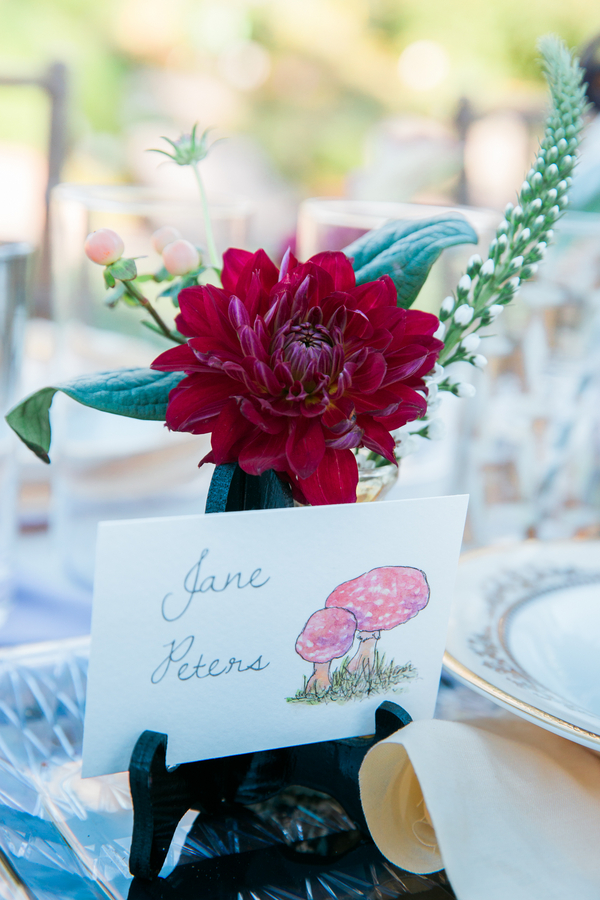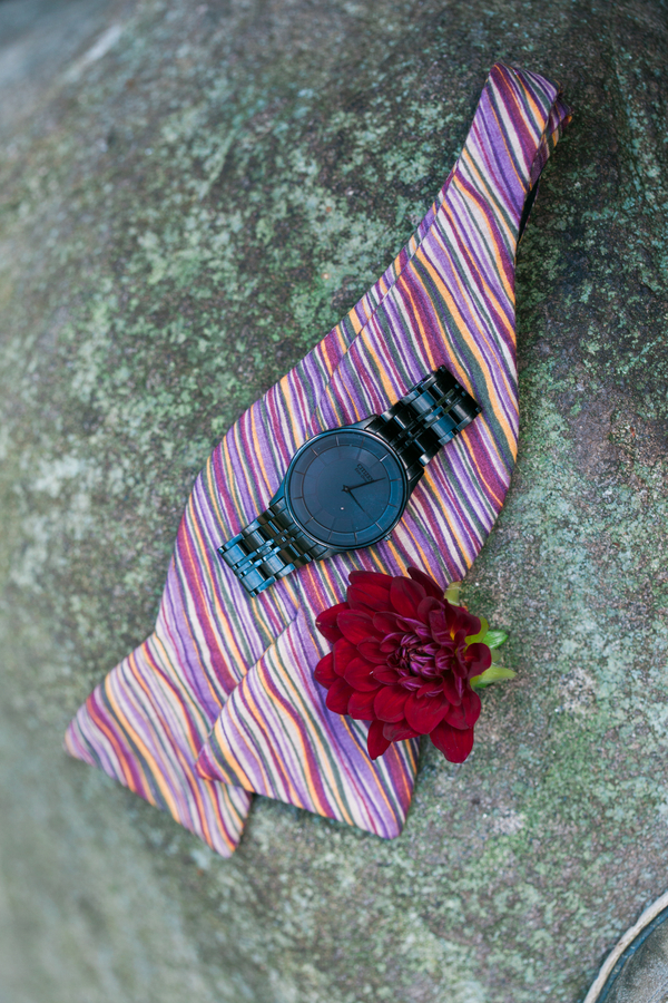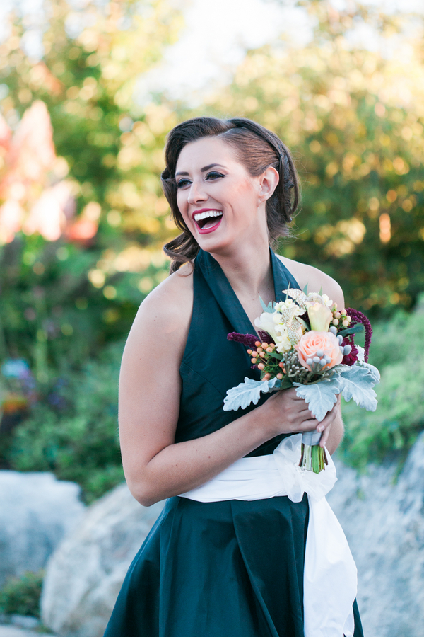 The bold colors in this circus inspired styled shoot at Boothbay Botanical Gardens really grabs my attention – especially the brilliant colored pumps! Throughout you can spot splashes of stripes, polka dots, floral patterns, wood grain, burlap, sheer, satin and different kinds of metals. All in all, this shoot really shows that you don’t have to be afraid to use color, texture, or patterns in your wedding day decor. When done correctly, you can achieve a great eclectic look and feel.