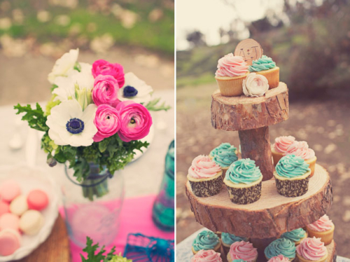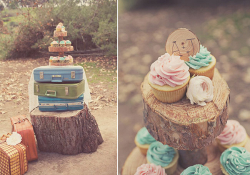 March 22, 2011 at 1:26 amOkay this is just fabulosu! Love the cupcake stand on the suitcase, all the pretty colors on the table, the wood rounds they incorporated, the lace…okay all the details really! Gorgeous inspiration here 😉