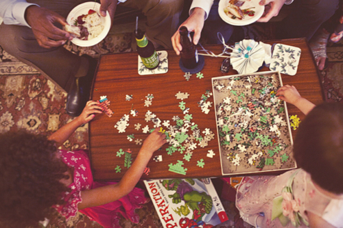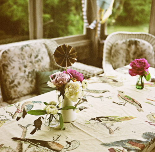 We’re starting off this week with a whimsical wedding photographed by Heather of One Love Photo. We love how the bride, Shaylah, described that her wedding planning inspiration came from the movie Big Fish and that she was thinking of her wedding as “one giant art project.” Despite all the beautiful details, the whole celebration seems so relaxed and grounded. After all, this wedding showcases a bride in a pink cardigan! The wedding started with a church ceremony in Peabody, Massachusetts and proceeded to a fun reception at a home in Manchester-by-the-sea. We adore the fact that the bride and groom both wore glasses, and Shaylah is so cute in her pink cardigan. The ceremony backdrop was so colorful and fun. We love that bouquet – peonies, ranunculus, all of our favorites. The reception was held in the living room of a friend’s home. Rather than sticking to wedding traditions like toasts and dances, Shaylah and Jon had a simple, heartfelt party with guests playing cards, putting together puzzles, eating pie, and listening to their favorite records. The decorations were perfect: paper pinwheels, streamers, and more peonies! What a sweet and fun wedding! We’ve seen a lot of backyard weddings, but this is the first one we’ve seen that was pulled off so beautifully inside a home. Thanks to One Love Photo for sharing it with us!Gallery