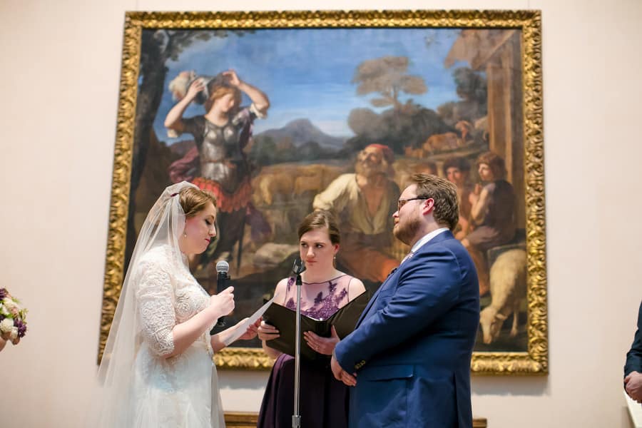 “Brittany and Chris got married at the beautiful Minneapolis Institute of Art, an art museum in Minneapolis. This couple met while attending the University of Minnesota and now they’re both attorneys in Washington DC. They chose to get married at MIA because they wanted to say “I do” surrounded by beautiful artwork.