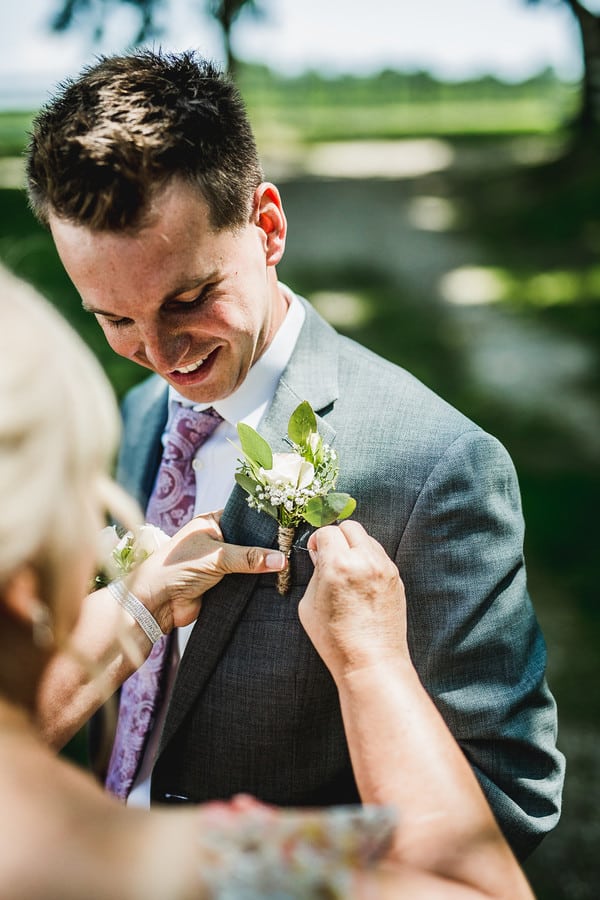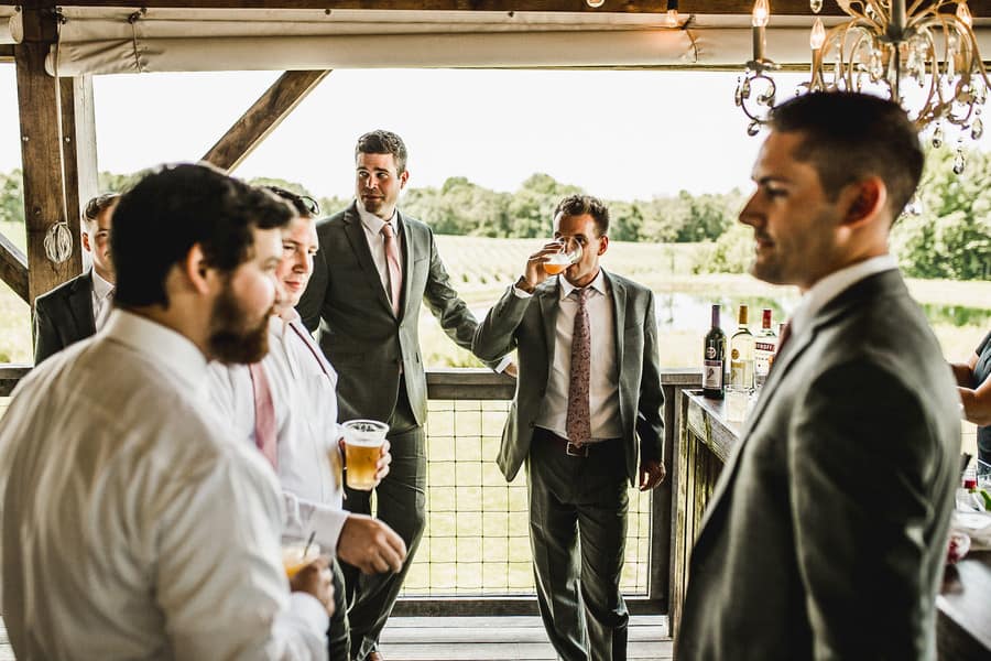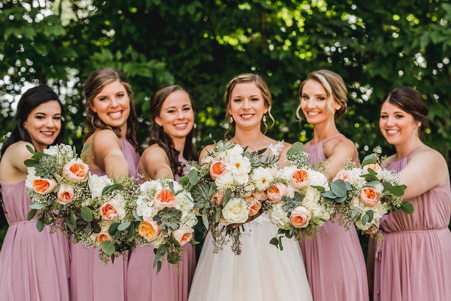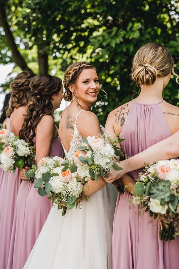 Q1: Tell us about your wedding! “We gained inspiration from Pinterest. I think we finally determined that we were going for a rustic chic look to match our upscale barn. Our color palette (taken from Pinterest) included dusty rose, sage green, and cream colors/champagne. We did not have any cultural or religious traditions, but did include a memorial table for our grandparents. My aunt also found me (bride) right before the ceremony to give me my grandmother’s class ring: my something old, something borrowed, and something blue. This was especially heartfelt.” Q2: Let’s talk wedding decor “The grounds of our venue and the venue itself were so beautiful already that we did not decorate much. We mostly utilized decor that the venue provided and flowers to decorate. DIY items for the centerpieces included: putting succulents in jars, putting florist supplied flowers in mason jars, tying napkins and creating table numbers that had pictures of the bride and groom at its corresponding age.” Q3: What were the florals like in your wedding? “Florals were not a huge part of our wedding, but they were used in bouquets, centerpieces and at the end of the aisle. It was important to the bride to have lots of greens in the bouquet, with hints of pink and cream to match the bridesmaid dresses, but flowers and flower-types were not very important. It helped that the background to our ceremony included trees, wildflowers and a vineyard.” Q4: Did you personalize the day in any way (food trucks, guest entertainment etc.)? “Our officiant, Chris, was one of our very few friends that met us both at the same time (he didn’t know one or the other first). We were so lucky that he agreed to be our officiant, because we knew we didn’t want someone that did not know us personally. “Chris was the perfect person because he could speak on behalf of both of us, as well as us as a couple. He also blew us away with how great of a job he did; we could not have asked for a better officiant! “One of our friends from college offered to play acoustic guitar during dinner; this gave dinner a special and intimate feel that we were not originally expecting to have. We requested to have Wagon Wheel by Darius Rucker to be our last song, as this song is special to our friend group. This song prompted our friends to circle up, and then close in on us in the center. This was special for us because we could really feel the love from our friends who we don’t often have all in one place.” Q5: Let’s talk fashion “Pinterest helped, but actually trying on dresses helped even more. I (bride) went into dress shopping thinking that I wanted a sheath lace dress, and I knew I didn’t want a ballgown. After trying a variety of dresses on, I realized that the sheath dresses did not have enough room for dancing and did not flatter my body as well as the A-line dresses did. Once I tried on an A-line dress that had some lace on top and a tulle bottom, I knew I had the perfect combination for me. “I also thought I wanted to have my hair half up, until I tried different hairstyles on with my dress. I decided that putting my hair up in a loose bun with a braid matched my dress better, and helped with the August heat. Shoes, nails and makeup I wanted to keep neutral. I knew that I wanted to wear sandals so I would not be taller than Christian, and I wanted shoes that I could wear again.” “Christian knew he wanted to go with grey suits and brown accessories, to create a rustic feel to match the venue. There was great debate on if and/or how the groom would match his groomsmen. I (bride) suggested that he wear a tie and the groomsmen wear bowties, but Christian doesn’t like bowties. Instead, Christian had a somewhat paisley pink tie, while the groomsmen had solid pink ties. Brown shoes and belts were left to the discretion of the groomsmen. Christian also provided brown leather watches to the groomsmen to be worn on the wedding day.” Q6: How did you meet? Tell us about the proposal. “I (bride) knew the proposal was coming. Christian instructed me to dress up and informed me that we were going to hang out with a friend at Holly Recreation Area (and have a fire in the middle of a 90-degree day) and then go out to dinner. I played along, but became skeptical as we sat, for what seemed like a long time, in the heat. “Finally, Christian began his proposal, that he obviously worked hard on, and I became aware of the photographer capturing this special moment. We also captured a few more engagement pictures after the proposal. To make it really special, Christian rented one of the two cabins to stay the night in. We canoed the small lake that the cabins sat on that night, had a fire, and drank wine. It was a perfect night.” Q7: What was the most anticipated or special moment of your wedding day? “The most anticipated and most special moment was the reading of our vows. We were happy that our closest friends and family could hear our personal and deepest expressions of love for each other because that is not something they often see/hear. There was not a dry eye in the house, just as we had hoped! Q8: Do you have any wedding planning or marriage advice that you’d like to share with other couples planning their day? “There are going to be details you forget until the week before the wedding, and there will definitely be details that you couldn’t have even thought of that need to be done last minute. In the end, it all works out and the small details missed won’t be noticed anyway. “Start planning as early as possible, even if your vendors look at you like you’re crazy for doing so; it will make life easier later.”Gallery