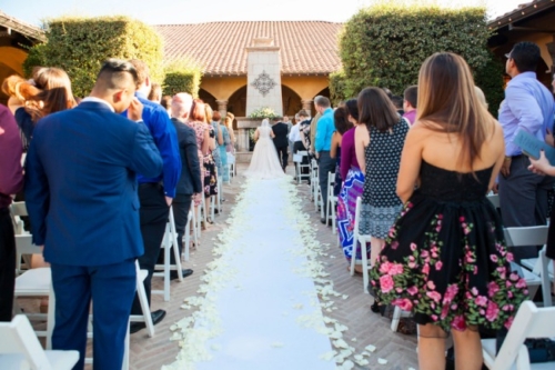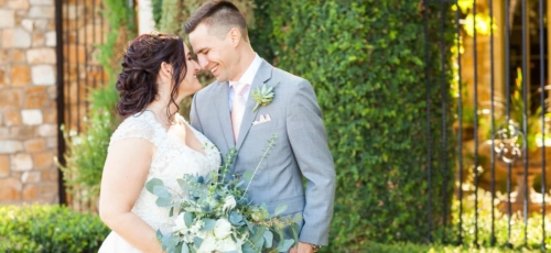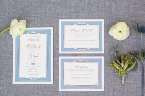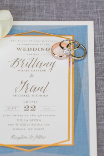 “I had originally seen Villa Siena online before we were even engaged and immediately loved it. Being Italian, I loved the architecture and overall feel of the Venue. Awhile later we actually attended a friend’s wedding there and that’s when Grant saw it and really liked it as well. We felt comfortable there right away. For our colors, we wanted to go with something more fall (as we did get married on the first day of fall J). Blue has always been my favorite color and I loved the way dusty blue, rose gold, and grey looked together for a romantic modern feel.” — Brittany