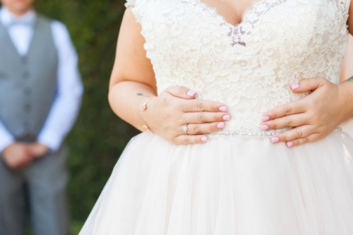 “There were so many amazing and beautiful parts of the day, it’s too hard to pick just one. I loved getting ready with my Bridal Party. We went to my bridesmaid Justin’s house where he had cute d?cor set up, fresh fruit, homemade coffee cake, and mimosas waiting for us. Later in the day his boyfriend made us bruschetta and salad with wine. It was so fun talking and laughing as we got our hair and makeup done and it made the morning truly feel special. Another moment was our first look. Grant basically jumped back and put his hands over his mouth in shock when he saw me. And another was my father walking me down the aisle.” — Brittany