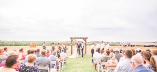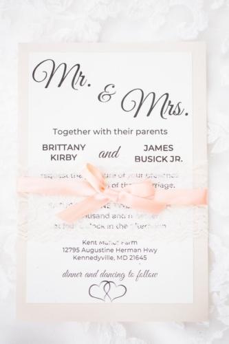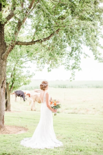 Photographer’s Comments: “Brittany and Jimmy were such an exceptional couple to work with! So genuine, kind and full of love and laughter. After dating for several years, Jimmy proposed on Christmas Eve, when Brittany’s brother was home visiting; fast forward to their wedding day where her brother (James) officiated the ceremony! “Brittany & Jimmy planned each and every part of their wedding day themselves, with the help of their family and close friends. From refinishing the arch for their ceremony, to getting on the forklift to hang reception lights; every detail had their hard work poured into it. Brittany made the invitations, her bridesmaid Taylor created the signage, and a good friend Rachel designed the florals. Everything came together absolutely perfect and was so beautiful! The coral and blue color palette was a gorgeous combination and absolutely perfect for summer. “Kent Manor Farm continues to be a true working farm, and provided an incredible backdrop for their day – complete with a pasture of cows! It was a sentimental location for the couple, as Brittany grew up showing cattle in 4H, which is where she met the Miller family who own the farm. “I look back through these images and am filled with such joy, as I’m reminded of the warm welcome we received the day of, and how much this couple is loved and adored by their family and friends!”Gallery