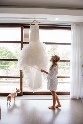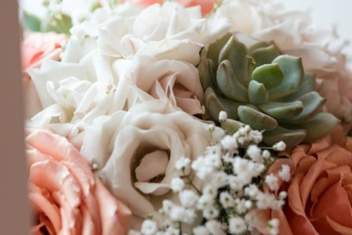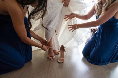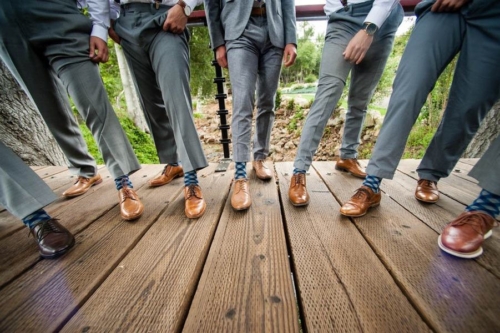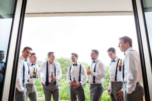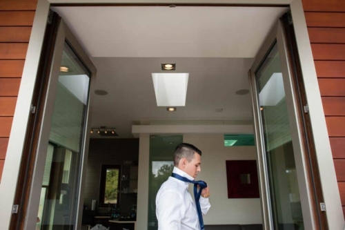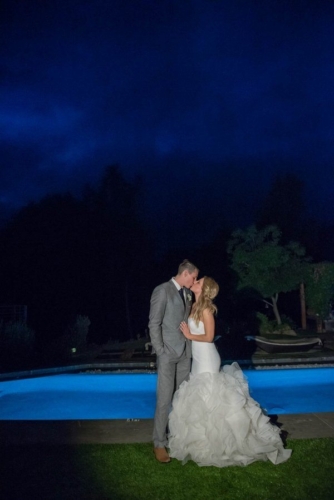 Photographer’s Comments: “Brittany and Tyler’s Temecula wedding was gorgeous and unique. The only thing typically Temecula about their wedding was the pretty little vineyard that provided the perfect backdrop for their ceremony. “The house on the private property was modern and beautiful, with windows that surrounded every room and provided amazing views from all directions. “Although rain was predicted for their day, the sun peeked through the clouds just long enough to watch Brittany and Tyler’s hear-felt ceremony with the groom’s brother making the perfect officiant. The rain held off long enough for everyone to see the couples and their parents dance on the wooden deck, surrounded by friends, family, and flowered gardens. And just when everyone thought the rain was gone for the day, it decided to send everyone inside shortly after dinner was enjoyed at the beautifully decorated reception tables. The timing actually couldn’t have been better! “Once inside, toasts; drinks; and laughter were shared and the couple exchanged their beautifully decorated donuts together.So both sunshine and rain had their place on Brittany and Tyler’s day and have forever become a memory for them to retell together.Editors love to know the story of the album. Add the scoop here.”Gallery