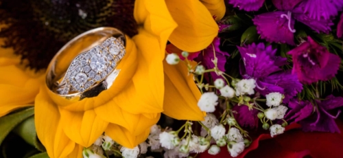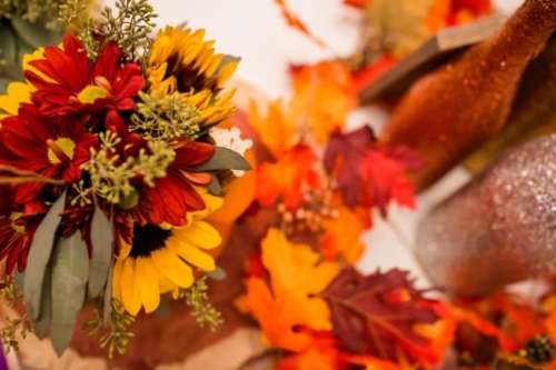 As it was mid-October, what could be more fitting than a ‘Fall In Love’ themed wedding complete with fall foliage and gorgeous bouquets in a wide array of colors.