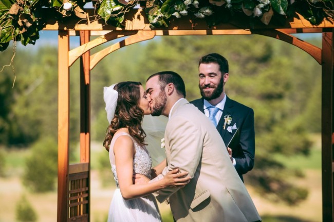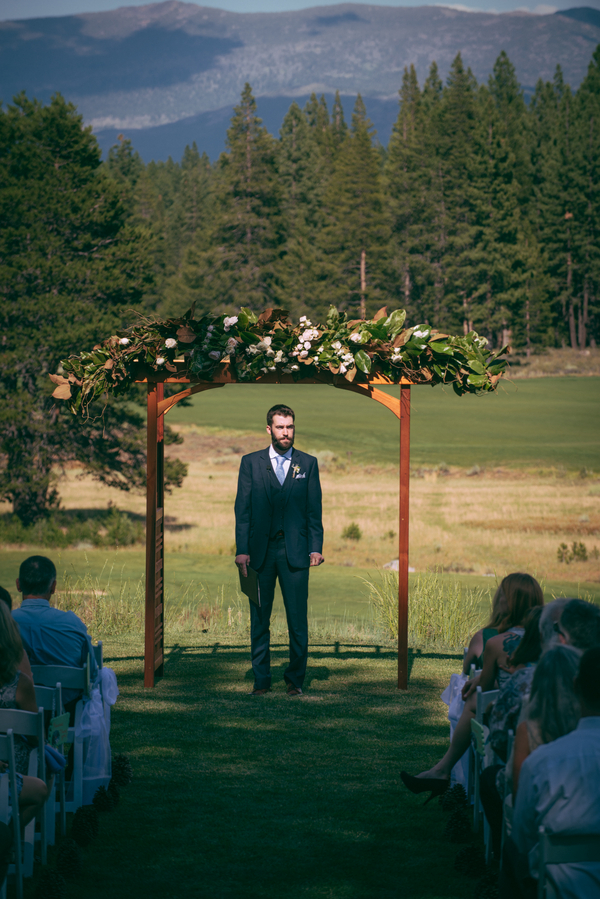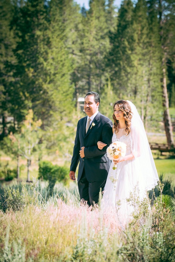 Tucked away in the Sierra Nevada mountains is a lovely outdoor wedding venue option – PJ’s Bar and Grill at Gray’s Crossing. The photos below showoff this venues natural outdoor beauty of tall pine trees and a vista view of the local Mt. Rose. Shannon Rosan captured a wonderful wedding with adorable woodsy details, pine cone escort cards, a pine cone aisle runner edge, a bride with a gorgeous draping bohemian dress, and lavender colored bridesmaids dresses to boot. In addition, I love the rustic charm, a few touches of glittery accents and the tail end of the warm summer sunshine.