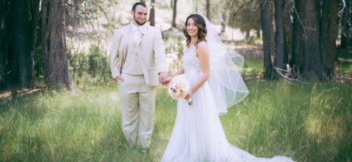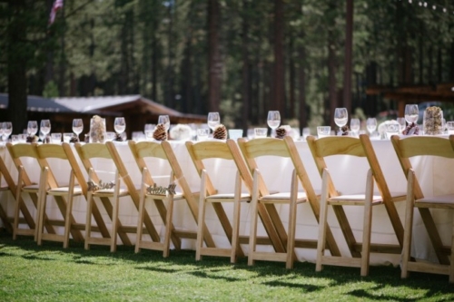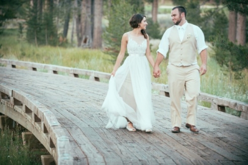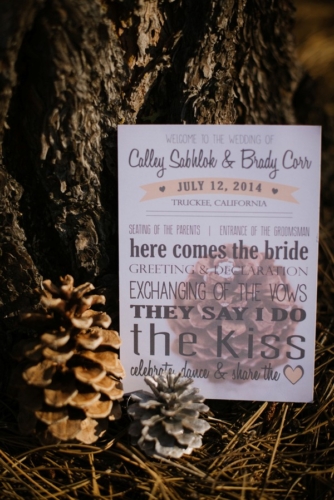 Tucked away in the Sierra Nevada mountains is a lovely outdoor wedding venue option – PJ’s Bar and Grill at Gray’s Crossing. The photos below showoff this venues natural outdoor beauty of tall pine trees and a vista view of the local Mt. Rose. Shannon Rosan captured a wonderful wedding with adorable woodsy details, pine cone escort cards, a pine cone aisle runner edge, a bride with a gorgeous draping bohemian dress, and lavender colored bridesmaids dresses to boot. In addition, I love the rustic charm, a few touches of glittery accents and the tail end of the warm summer sunshine.