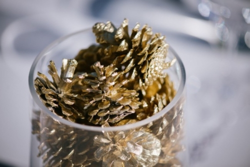 October 1, 2014 at 2:21 pmThere are so many details I love about the wedding! Not only the pinecones, but her dress is stunning. The use of scenery for natural decor with the way the tables are set up, the his and hers arrows, and the activities listed on each table. So many fantastic ideas in use here.