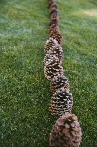 Today is the last official day of summer, so I thought this outdoor woodsy wedding with pine cone details was fitting to feature as a warm-up to fall. Â If you love this wedding then you had better start collecting pine cones. You will need plenty of them to pull off this cute theme.