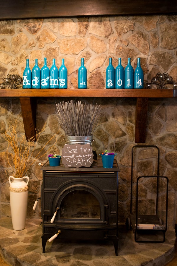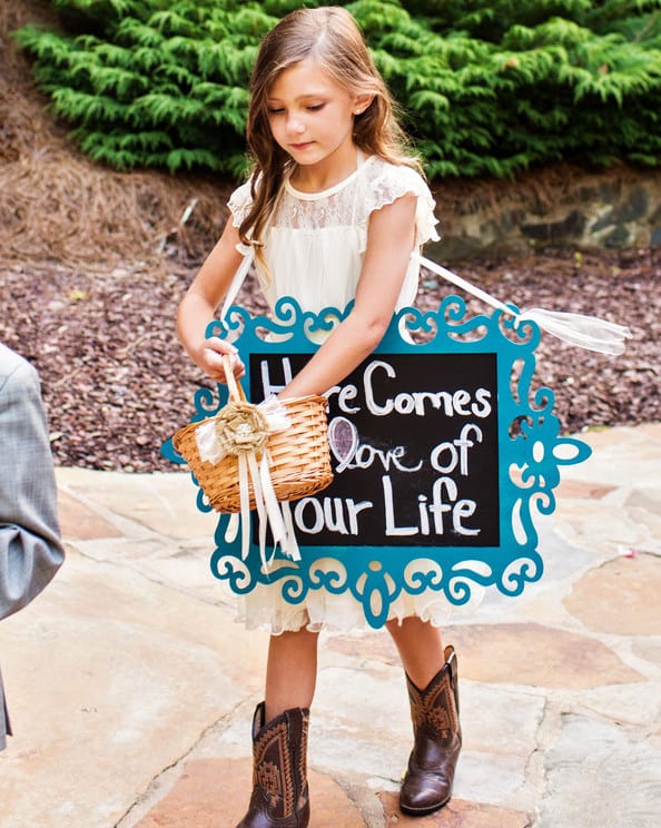 I gave them a personalized bag with their initials in teal that included a tank top of their favorite animal on it, homemade necklace that they could also wear during the ceremony, a personalized name tumbler, and a personalized koozie in chevron pattern in the wedding colors.