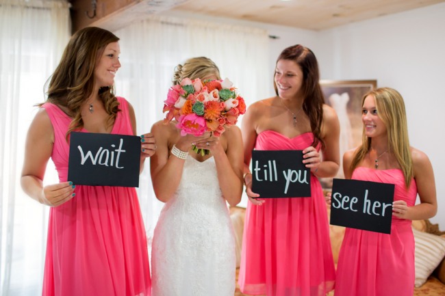It is quite dreary out with the sun hidden behind clouds, so featuring a cheery teal and coral wedding is the perfect cure for such a gray day!