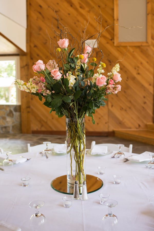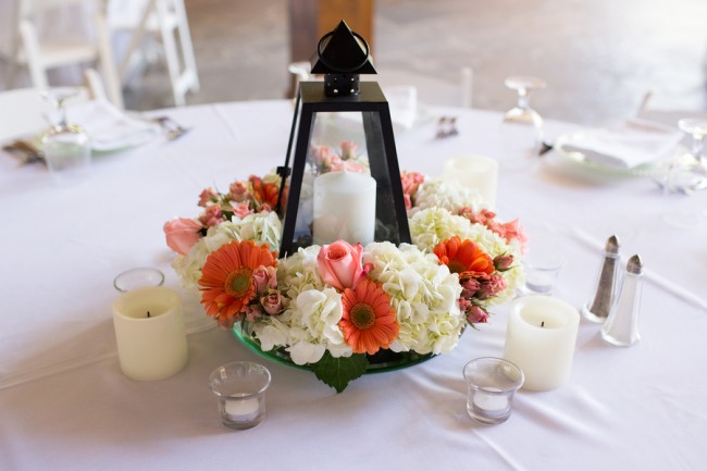 Our theme was a teal and coral wedding color scheme in a country chic style with touches of burlap.