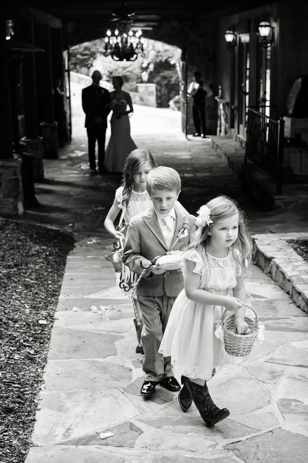 They all wore mismatched dresses by Bill Levkoff in a coral color. I let them wear their own shoes, but asked that they all kept to a light tan color.