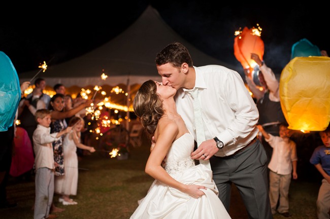 “One favorite part of the ceremony was when we recited our own vows. It was so special to us and certainly something we had been looking forward to saying to each other.We also loved during the ceremony when our parents came up and prayed with us. I loved the relaxed feel of our reception. We wanted to enjoy the beautiful weather and the yard, and we wanted to make sure our guests felt encouraged to make themselves comfortable. We had rocking chairs and games around the yard for people to enjoy. It was so fun to look out at the reception and see our little cousins running around having a fun time. I also loved our exit with floating lanterns and sparklers too. It was so fun.”