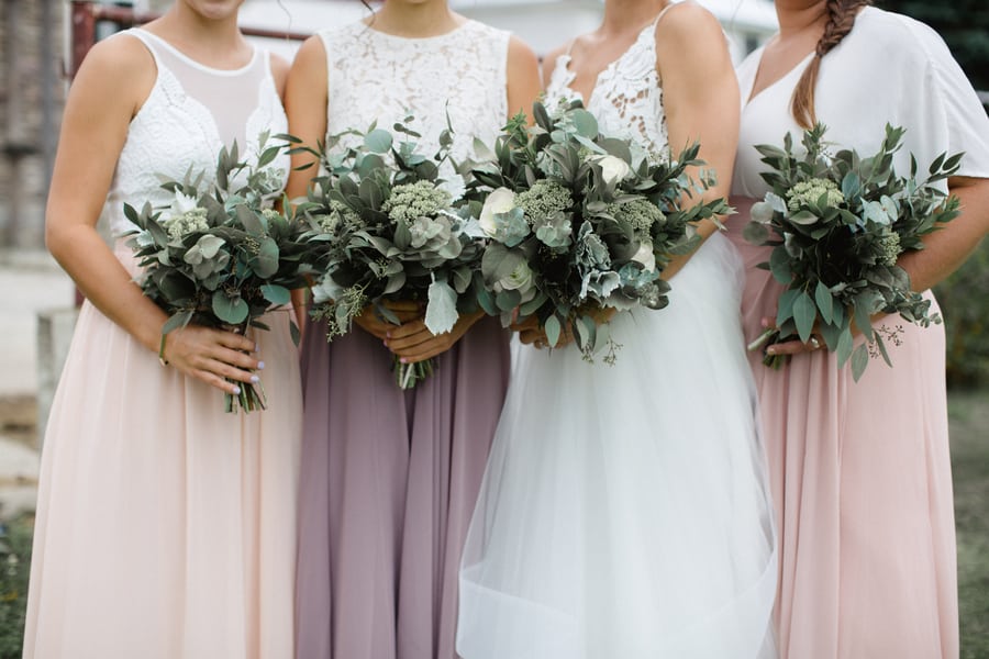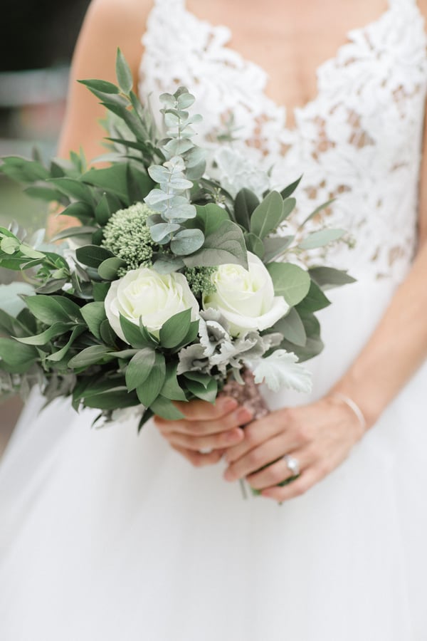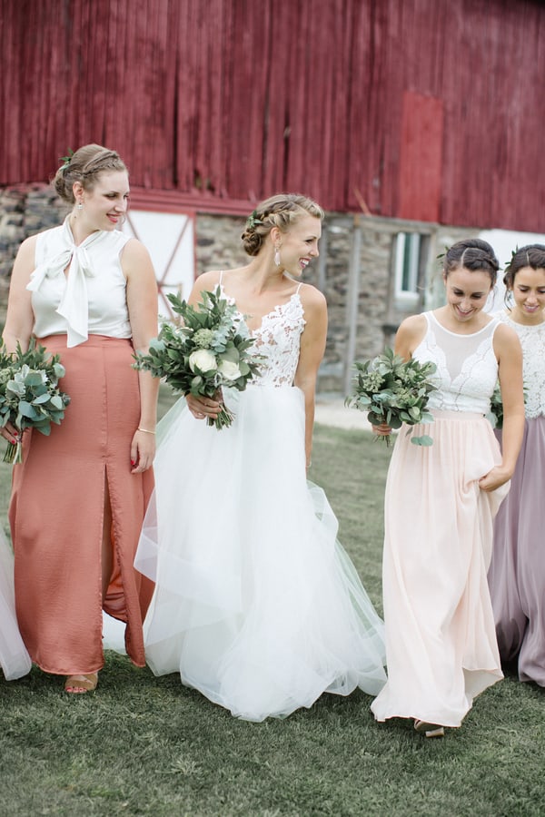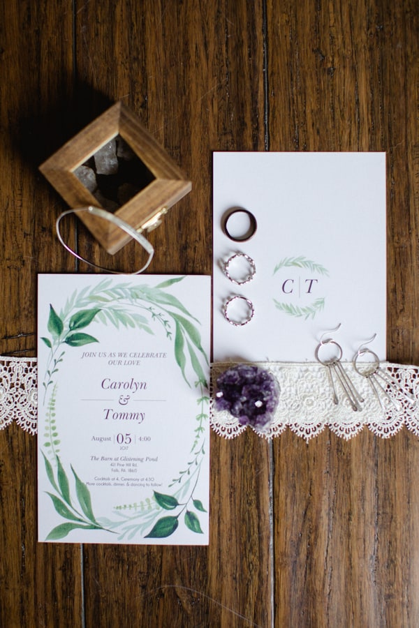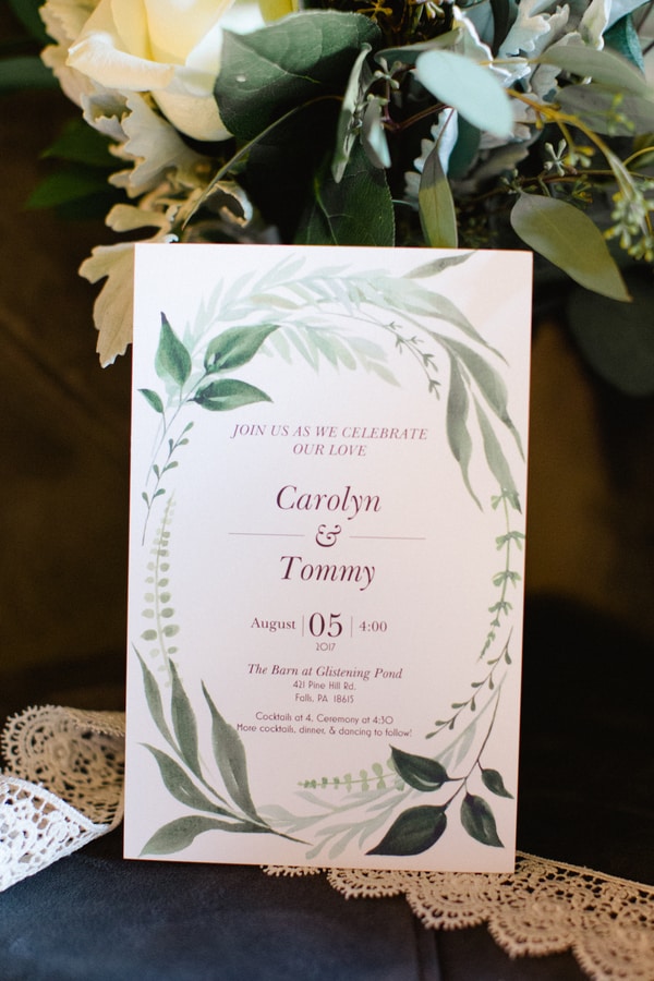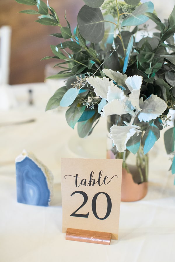 Q: Tell us about your wedding! “I envisioned an easy-going, free-flowing party filled with love. We left out most of the traditional events (bouquet throwing, cake cutting, etc.) so that guests could enjoy the beautiful scenery of the venue or the dance floor, however they liked. Very little time was spent with our 200 guests seated, even our ceremony was only 5 minutes long, which is exactly what we hoped for. We even had our first dance outside, directly after the ceremony during cocktail hour, instead of inside during the reception. Our guests never stopped mingling, laughing, dancing, and enjoying themselves. Our day ended up being very natural.” Q: Let’s talk wedding decor “My vision was for there to be a lot of green and for the style to be natural and organic. I went with mostly greenery, with some white flowers in my bouquet, and touches of copper here and there with the vases and the wire on the groomsmen’s boutonnieres. My bridesmaids wore mismatched neutral colors and they chose their dresses and the color themselves, and they did a fabulous job (I didn’t even see their dresses until the day of).” Q: What were the florals like in your wedding? “My bouquet was simple and natural, composed of greenery with a few white roses. I went with mostly greenery, with some white flowers in my bouquet, and touches of copper here and there with the vases and the wire on the groomsmen’s boutonnieres. My bridesmaids had the same bouquet but without the flowers, and the centerpieces were greenery too, with copper vases and geodes on the table.” Q: Did you personalize the day in any way? “My husband and I literally ‘exchanged vows’. We had written down our vows, and instead of reading them aloud, we silently read them to ourselves during our ceremony when we exchanged them. “We also had a tree planting ceremony, and our officiant’s words about our love were wrapped metaphorically into the planting of our tree. Our officiant was a long time friend, who I met while studying in Sweden and flew from across the country to be a part of our day. “My centerpieces included geodes, as did the groomsmen’s boutonnieres. My husband made a 7 foot tall wooden directional sign and I painted the names of the places that people were traveling from (Utah, Sweden, England, Spain, Arizona, California, Florida, Colorado, Pittsburgh, Philadelphia, and the towns we grew up in, Montdale and Scranton). “Our favors were delicious! Each guest ate pizza at the end of the night that our caterer had created as a late night snack. Our caterer also supplied our multi-flavored cupcakes; blueberry cheesecake, chocolate peanut butter, raspberry lemon, and vanilla cookie. “We had craft beer on tap from our favorite local brewery, Breaker Brewing Co., and craft bottles from another local brewery, SBC.” Q: Let’s talk fashion “My gown was unique and light as a feather! I danced, ate, and hugged guests effortlessly in a Halo Blush by Hayley Paige dress. The top was ivory lace with a v-cut back with strappy details, and the skirt flowed naturally with horse-hair trim. “My bridesmaids wore mismatched neutral colors and they chose their dresses and the color themselves, and they did a fabulous job (I didn’t even see their dresses until the day of). “Tommy wore a grey suit with a wood-grain tie, tan shoes and a rose, greenery and geode boutonniere with copper wire. The groomsmen all wore wood-grain ties, and the bridesmaids wore pieces of greenery in their hair. Q: What was the most anticipated or special moment of your wedding day? “My favorite moment was our first dance during our cocktail hour on the deck of the barn, in the sunshine. It was just such a sweet moment. But a close second was being on the dance floor towards the end of the night with all of our friends and family singing and dancing along with us! There was just so much love and joy the entire day.” Q: Any wedding planning or marriage advice to share with other couples? “Imagine yourself as a guest at your wedding, and plan it according to what would be the most fun for you as a guest. If you run through the day in your head, as a guest, and it seems like a joyful, beautiful day, then you’ve planned it right! Don’t worry if you’re doing some things less traditionally and about what others will think. Go with your instincts.”