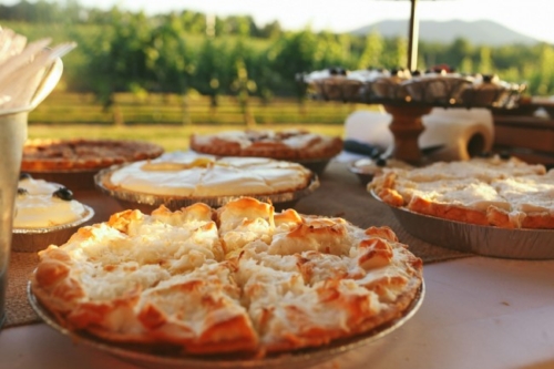 I can see why today’s wedding at Round Peak Vineyards really captivated Jordan Bannock Photography – a gorgeous couple whose personality shines through, an outdoor vineyard ceremony, and scrumptious looking pie desserts!