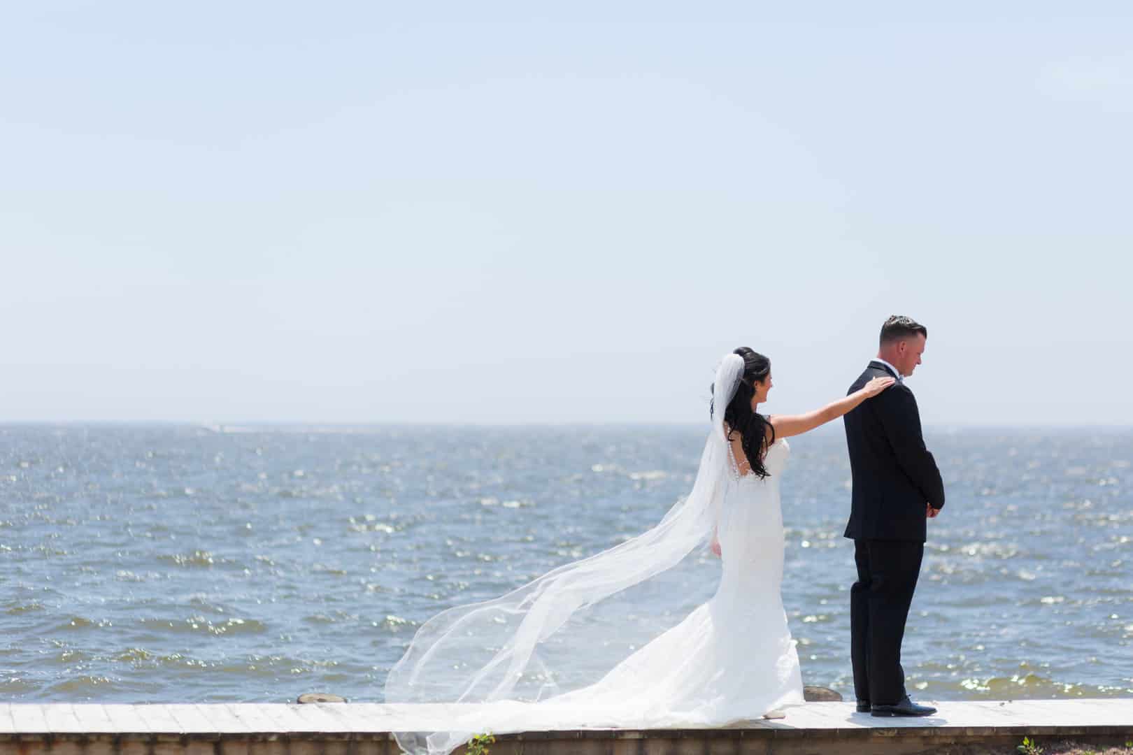 Chelsea + Ryan were married on a beautiful summer day. They had their first look right along the water. Their ceremony was held in a church and their rustic/elegant reception in a country club right beside a golf course.Gallery