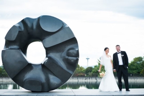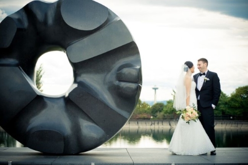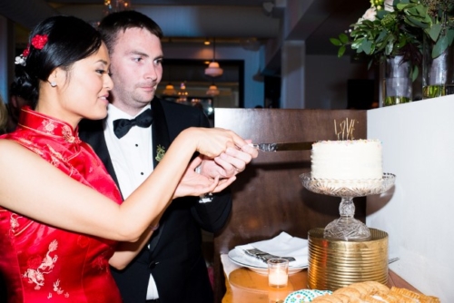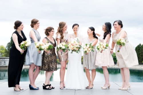 Married on a stormy September weekend, today’s multicultural wedding includes the best of the Pacific Northwest fused with Chinese style elements throughout the decor and fashion. We love the bride’s dog – a Westy – wearing a traditional Chinese jacket, along with the mismatched bridesmaid dresses at the wedding ceremony!