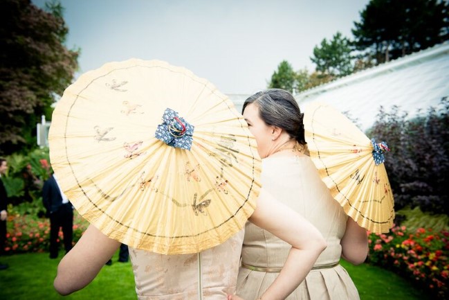 Married on a stormy September weekend, today’s multicultural wedding includes the best of the Pacific Northwest fused with Chinese style elements throughout the decor and fashion. We love the bride’s dog – a Westy – wearing a traditional Chinese jacket, along with the mismatched bridesmaid dresses at the wedding ceremony!