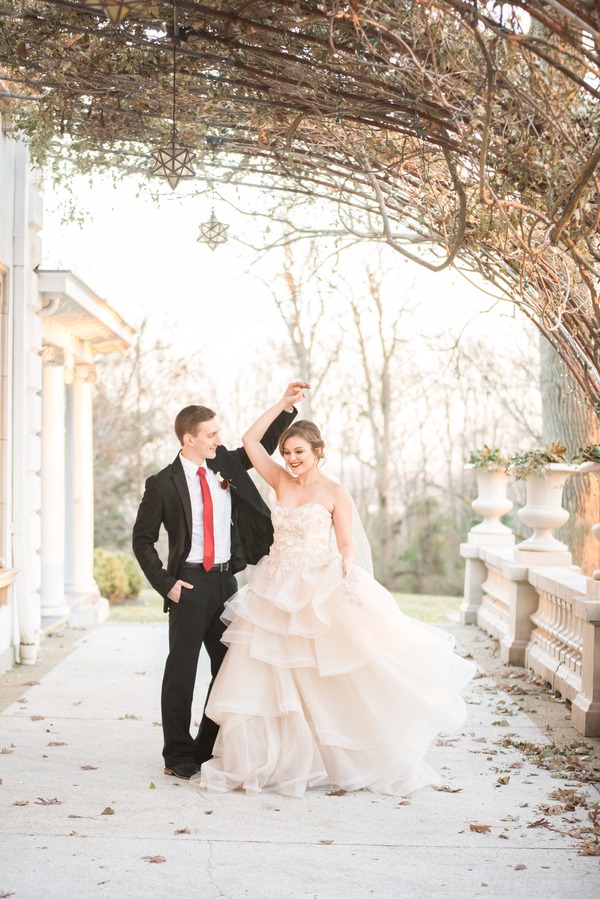 Katelyn and Nate are one of the sweetest couples you can imagine, and this styled shoot’s creators, Amanda and Heather, definitely saw something special in them when planning for this Christmas styled shoot. The shoot took place at one of the most gorgeous Christmas venues in northern Maryland, the Liriodendron Mansion.