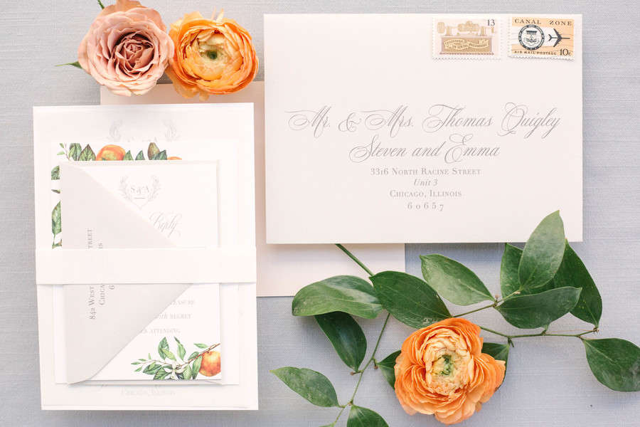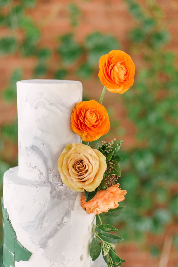 Citrus and orange tones inspired this styled wedding shoot in downtown Chicago at the gorgeous Galleria Marchetti. With expert vendors and creative minds, the team was able to construct a one-of-a-kind shoot inspired by summer colors and blooming florals. From a couture wedding dress to monogrammed oranges for favors, no detail was forgotten. This shoot included a stunning ceremony arch, a fully styled farmhouse table in the reception space, an artistic marble and brick-inspired cake, and much more.Gallery