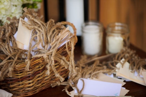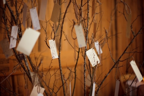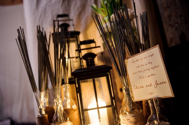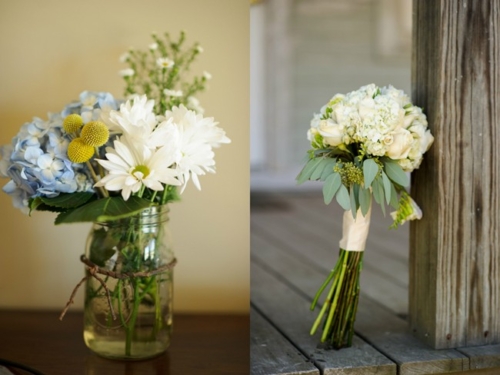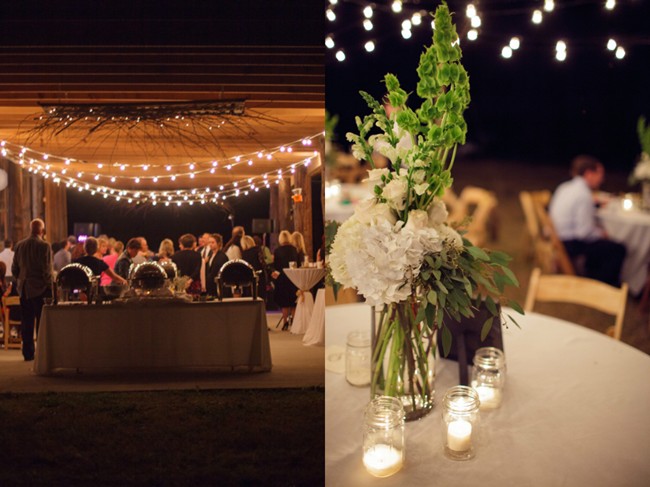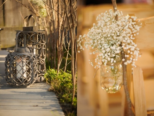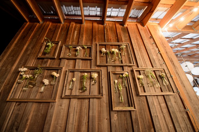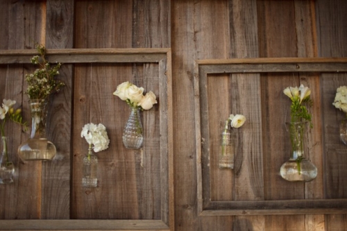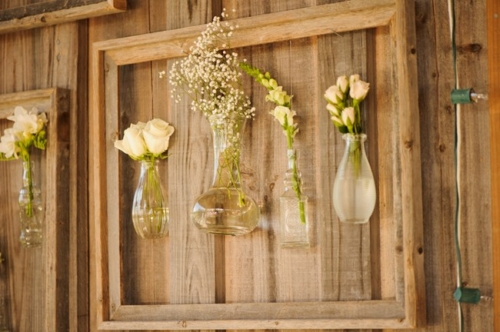June 17, 2014 at 8:43 pmLoving the rustic feel. Very original with the varied vases of white florals on the wall