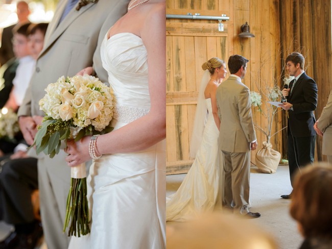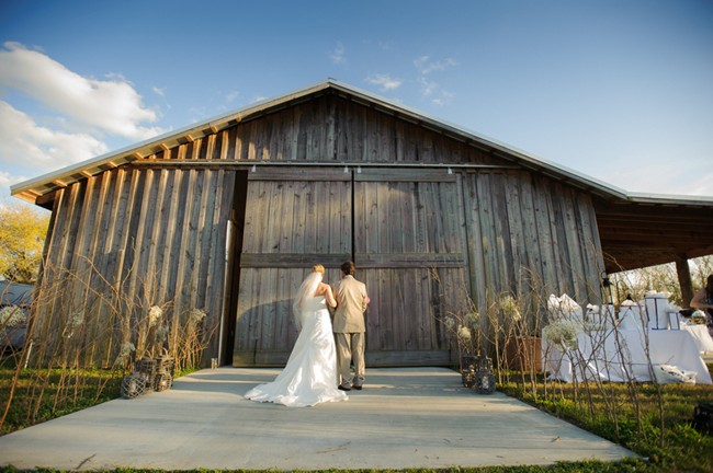 Well, what this couple did reminded me of a living wall. It looks so cute, gives some oomph to what would be a boring barn wall, and I think it looks fairly easy to do. The bride and groom spent their special day at a family friends’ barn and their wedding was full of gorgeous DIY details.