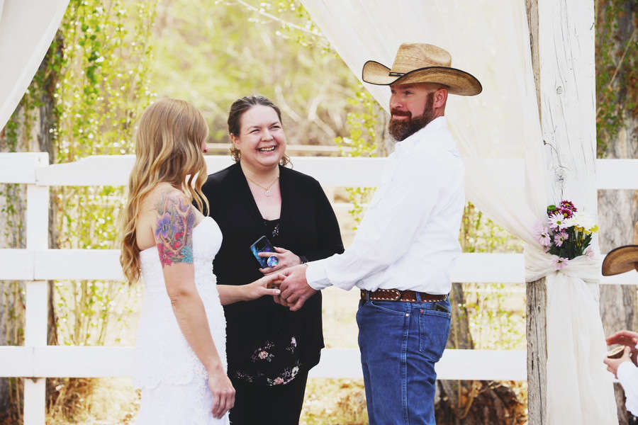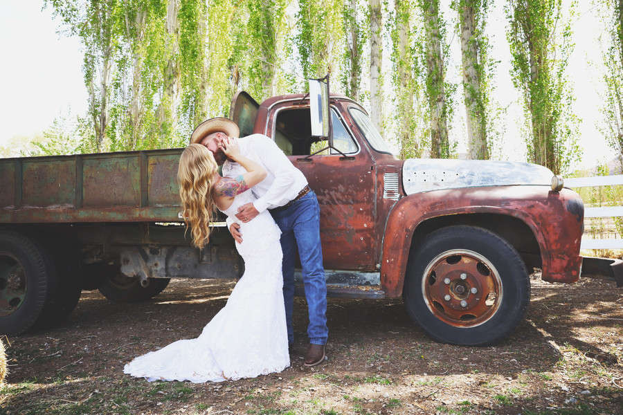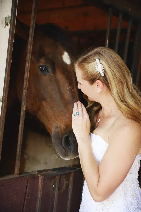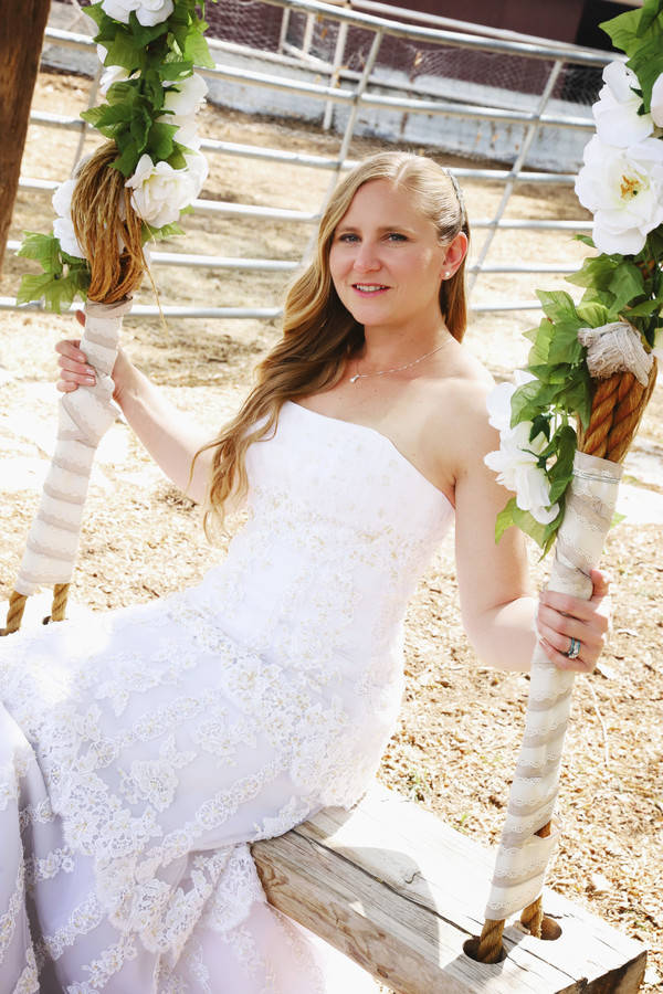 Photographer’s Comments: “A rustic country wedding shot about 30 mins outside of Las Vegas. The bride arrived to the ceremony on the back of a run down pickup truck. True to most country themed weddings, the groom wore a cowboy hat and the bride wore boots. “I loved the wedding swing that the venue provided as well as the horses in the barn that entertained guests while we took photos. “This was a DIY wedding. The groom’s mom made the cake & all the decor was just ‘stuff we had at the house’ the bride told me. Non traditionally, Calrice did something unique with her bouquet. The flowers she carried down the aisle were presented to both her mother and the groom’s at the beginning of the ceremony as a symbol of thanks and love.”Gallery
