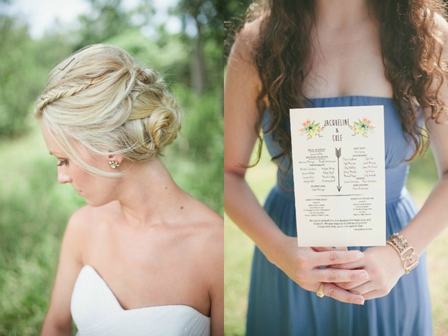 Bride’s Comments: “The two words that came to mind, when I started planning my wedding, were classic and whimsy. It was an outdoor wedding, so I wanted it to be fun, while at the same time be classy enough to feel like a wedding. I wanted to tie those two together by including just enough bold and handmade items, like the the poms poms, with several classic elements, like the gold tones in all the bottles.”