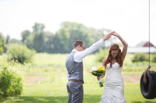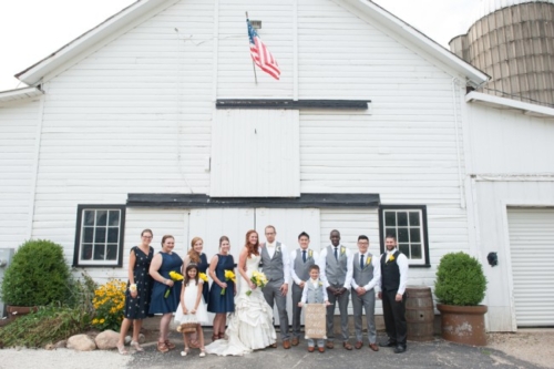 Photographer: Elite Photo Dress Designer: Allure Bridal Tuxedo and Mens Attire: Bar III at Macy's Floral Designer: Eclectic Gardens Dress Store: Here Comes the Bride Reception Venue: Heritage Prairie Farm DJ: Lee Michaels Music Officiant: Rent a Rev Invitation Designer: Zazzle