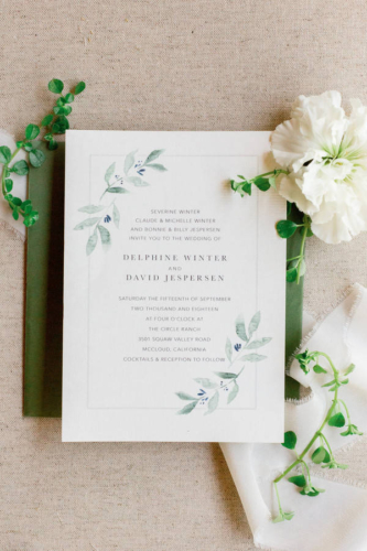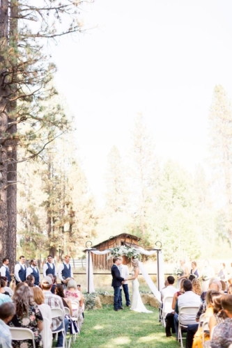 Photographer’s Comments: “Delphine and David had the location for their wedding in mind immediately after David surprised Delphine with a beautiful pear shaped diamond engagement ring in front of their closest friends and family in the small town of McCloud CA. D + D have a deep connection with McCloud and wanted to bring everyone together for a wedding at a private ranch tucked beneath the trees.