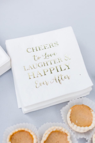 “Everything was personalized. From the music we walked down to, to the dances we danced to. From the food, to the mini pies we tasted 1 year before the wedding day. Personally, my favorite part was walking down to see my handsome husband smiling at me. But also the dancing… We both never left the dance floor!”