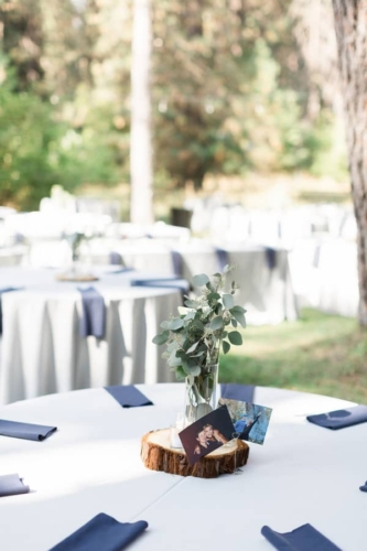 “The couple’s portraits are breathtaking in the meadow and tree lined scenery, and guests loved the fresh mountain air on the warm September day!”