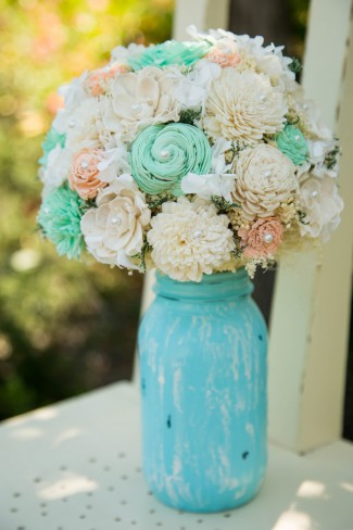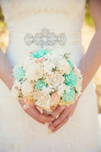 - I absolutely loved the faux flower bouquets that Desirae found on Etsy. They were made of bark, paper, and pearls and the light pastel hues look so beautiful with the bride’s dress.