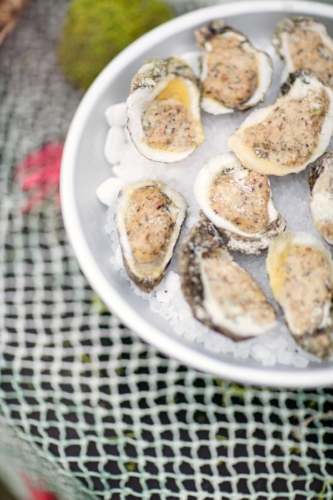 “Their non-traditional chocolate and peanut butter naked cake was a huge hit and the grilled oyster station delighted their guests from the East Coast.
