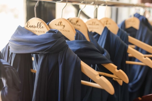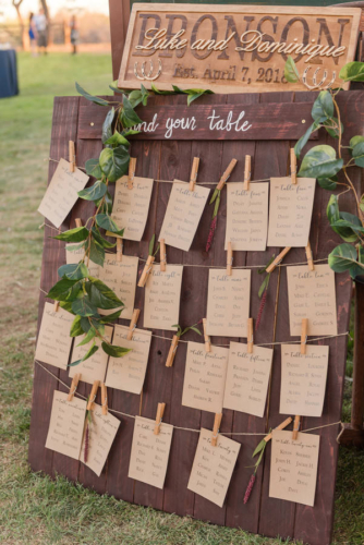 Photographer’s Remarks: “It was in the high 80s and sunny so even their evening outdoor reception was comfortable for all of the guests. There haven’t been many weddings at this venue before, so I was really excited to photograph a location new to me in a way that hasn’t been seen before! “There were so many unique elements as part of their wedding that really made it special for the couple. Their wedding theme was Tying the Knot, which was evident throughout from the gold tie bracelets she gifted her bridesmaids to an actual tying of a rope knot they performed during the ceremony. It symbolized the joining of two separate lives and families into one by tying an infinite knot. The more pressure on the rope, the tighter the knot will become — just like in a marriage where it should only get stronger when going through hard times. “To incorporate Luke’s son, Dylan, into the ceremony, the couple had their initials branded into the arch that Luke made by the way! Before their vows, Dylan added to it with his own branded “D.” Dominique’s bouquet had a leather wrap with small photo charms to honor family members that have passed. “I enjoy the pressure of photographing another photographer’s wedding and Dominique had put incredible thought into all of the elements for every part of the day. They wanted a backyard feel where people could come and celebrate their special day with lawn games, drinks, and Mexican food! Their colors were navy, burgundy, brown, and gold, and a majority of this rustic chic wedding was DIY by Dominique and her mother, Joanna. “Every wedding has those moments that just choke you up and bring you to tears or that make you smile so hard your cheeks won’t stop hurting, and many of these moments revolved around her dad, Richard. Dominique decided to have a first look with her daddy, and as the last of his three daughters to get married, she gave him a custom handkerchief with the saying ‘Dad, to dry your tears as you have always dried ours. Just remember… we loved you first!’ and a photo of each of him holding each of his girls when they were newborn babies. “Then during the ceremony, he came up after her uncle was done officiating, and with tears welled up in his eyes and his voice choked up, officially announced them as husband and wife. And last, but not least, he had recorded a heartfelt song of a recording of him singing the song to which he and Dominique danced to during the daddy-daughter dance!”About This Wedding