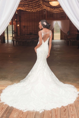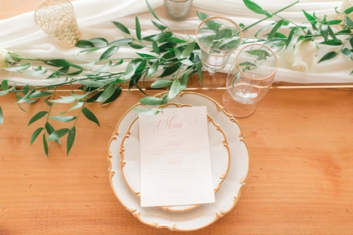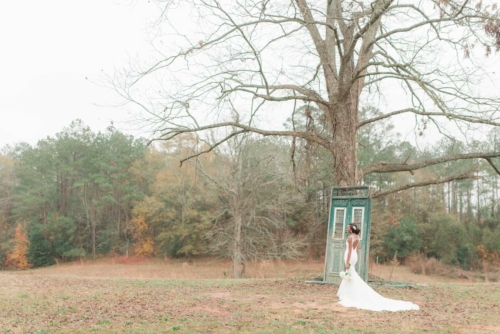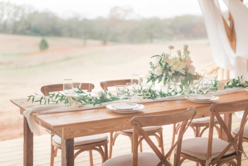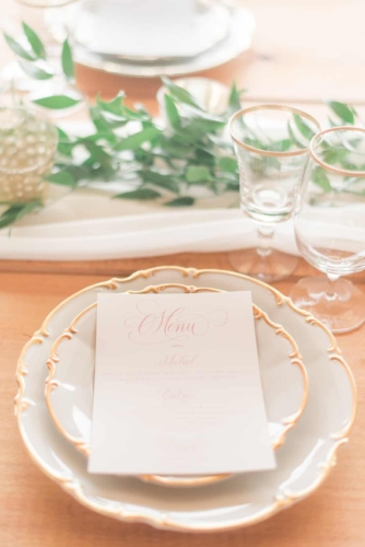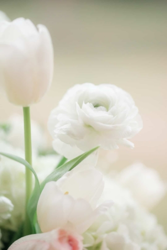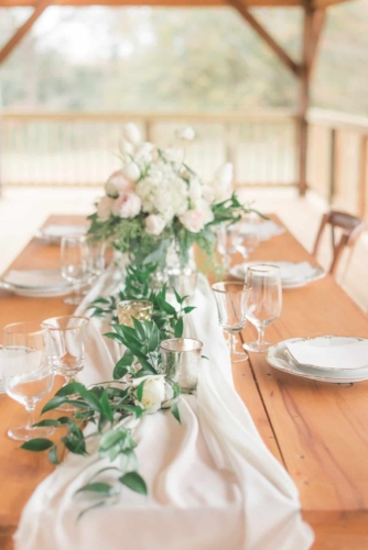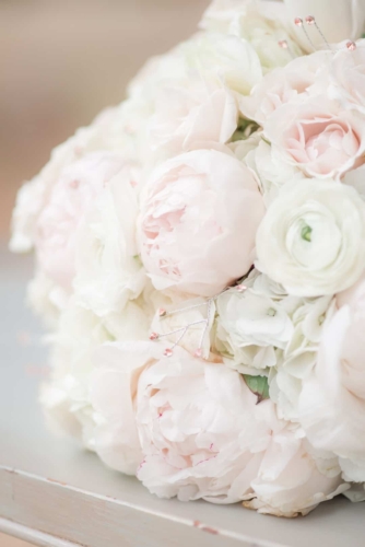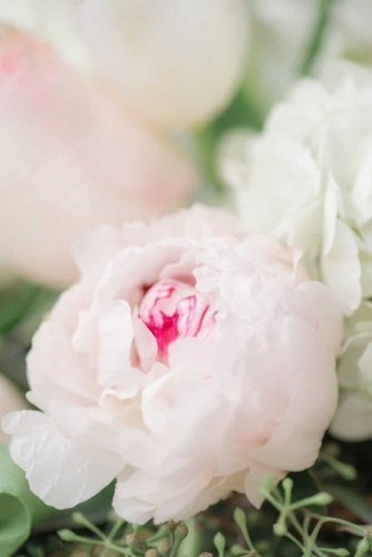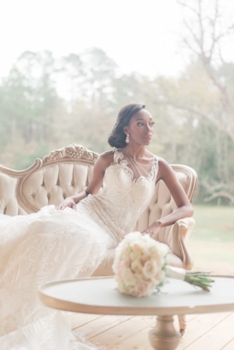 “Came the spring with all its splendor, all its birds and all its blossoms, all its flowers, and leave and grasses.” – Henry Wadsworth Longfellow The white, cream, gold, and blush tones of this dreamy, romantic shoot hinted at the promise of the coming spring season. Surrounded with immense pecan trees, and rolling hills and valleys, The Wedding Barn at L’Horne (circa 1904) served as the perfect setting to bring our vision to life. Gold accents in both the bride’s jewelry and the table settings brought a touch of glam, while still keeping the feel soft and romantic. This soft, feminine pallet is highlighted in the floral arrangements from the day. The bride’s bouquet was filled with peonies and ranunculus. Hydrangeas, veronica, tulips, roses and ranunculus overflowed from the table’s centerpiece. The bride’s lace gown, paired perfectly with the vintage couch and gold trimmed vintage china and glassware of the romantic table setting. All these elements joined together to add a perfect touch of elegance to the natural surroundings.Gallery