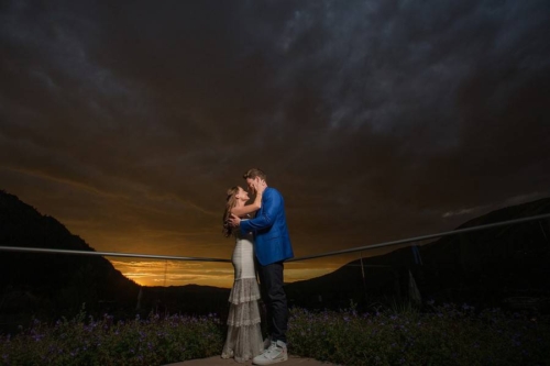 Photographer’s Comments: Every little detail of Elizabeth and Ken’s big day was a nod to their personalities and style, from the flowers with their bright pops of color to Ken and his groomsmen’s fresh Nikes. Their Aspen wedding was both elegant and intimate as they celebrated with their closest family and friends at 11,212 feet overlooking the Elk Mountain Range.Gallery
